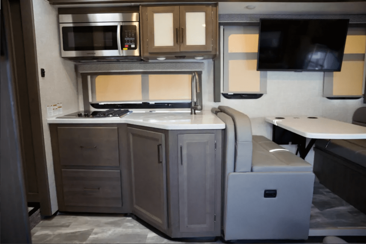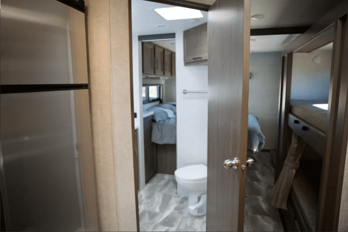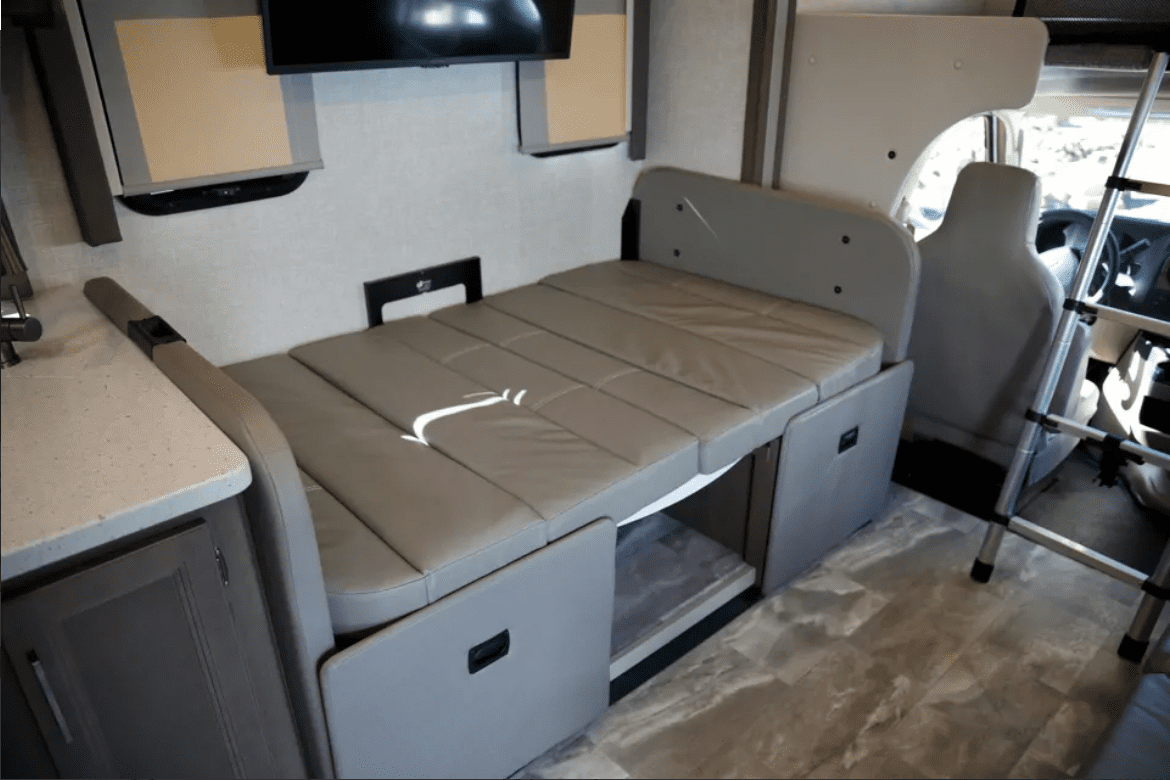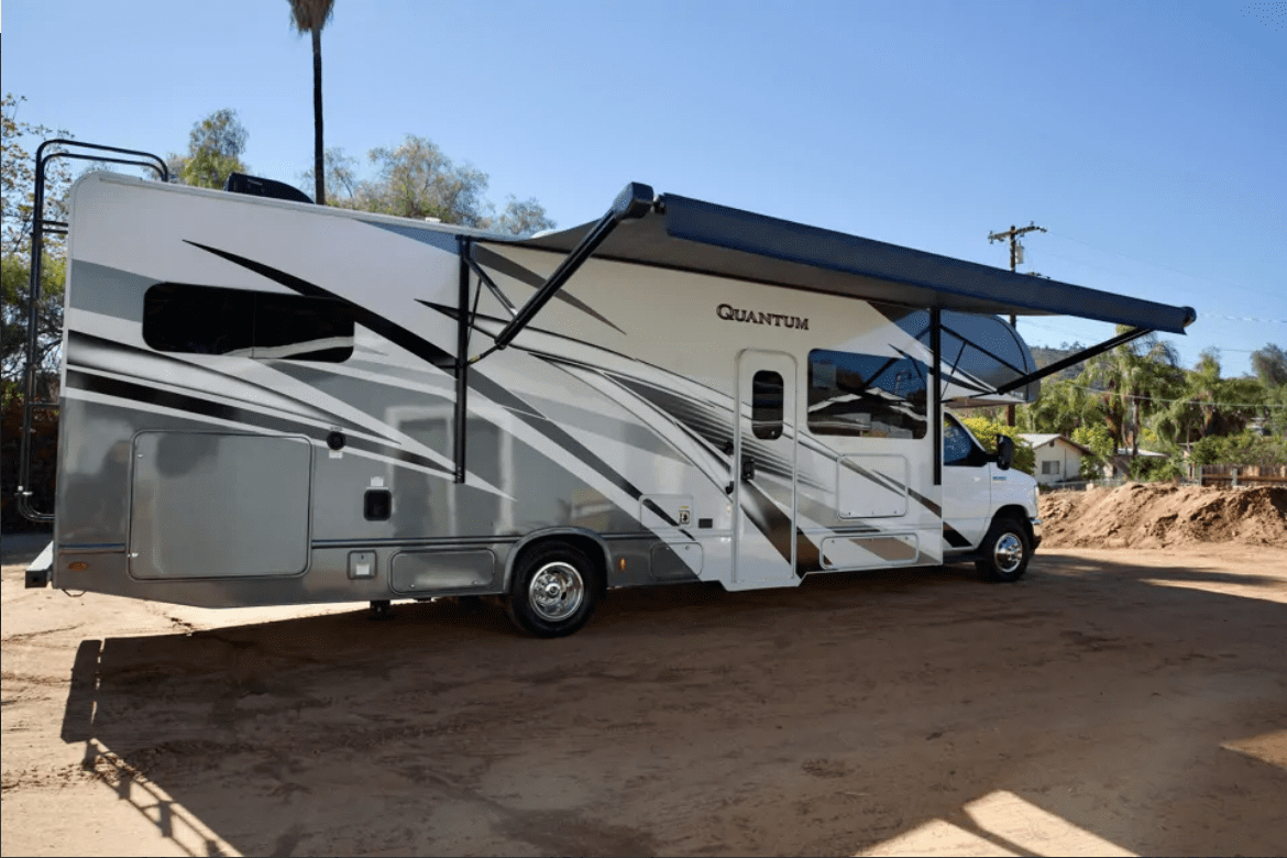 Our family would love to welcome you to our brand new fully off-grid 2023 Thor bunkhouse motor coach. Our modern luxury rig is perfect for the fun, family adventure- all in the comfort of a house on wheels. Our RV is just off of Interstate 8, a prime location for picking up and hitting the road. We offer free renter parking on site upon request! Whether it’s going to the beach, river, mountains, desert, our RV can do it all in comfort and luxury with leather captains chairs, 3 TV’s, 6 sleeping locations, and other premium features. With cameras on both power mirrors and a rear view camera, electric seats, cruise control, auto-leveling, and other drivers aids, this house on wheels drives easier than most small rigs out there. We want to ensure you get the same amazing experiences we do, by making sure you’re equipped with everything you need for a confident, safe, successful, and fun trip. WHATS INCLUDED Our RV has enough room to comfortably sleep 8 adults, and up to 10 if some are kids. Sleeping locations include an overhead bed above the cab, fold-out couch, convertible dinette, and 2 bunk beds. A bedroom in the back houses a queen bed, night stands with storage, closet, bathroom access, and TONS of cabinet space. Onboard dual AC’s and heater keeps the entire space to temperature with ease no matter what the weather is outside. A residential size fridge, gas burner/induction combo stove, and convection oven wrap up the kitchen. An 800watt solar system keeps things charged up during the day, and a 3000w inverter keeps you from needing to use the generator for larger appliances. The kitchen is fully equipped with pots, pans, bowls, cups, plates, and all the utensils you can think of. While you’ll need to bring your own food- we’ve supplied you with a French press coffee maker and the basic spices you may want for a tasty meal. Upon request, we provide the master bed, bunks, and above cab sleeping areas, with fresh linens and comfy pillows. There’s also bath towels and a few small travel toiletries for your stay! We offer a heavy duty folding canopy, campsite collapsible trash cans, and a large 8’X20′ rug for under the awning also available to add on. Want to rinse off after an outing at the beach before heading in? Spray down with our warm outside shower! For those with young children, we have bunk net guards for all bunks and overhead beds. OTHER DETAILS All of the supplied linens and anything else provided by us is OF COURTESY. If you wish to not use our linens or anything else provided by us, please let us know before your trip starts so we can remove them before your trip, and get you on the road as fast as possible!