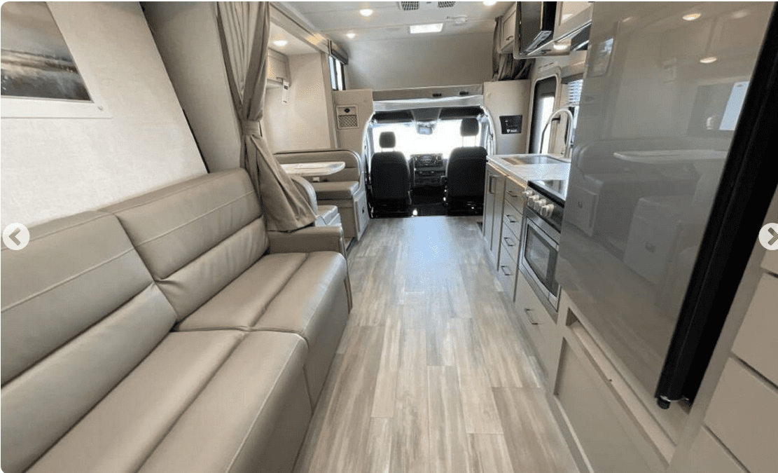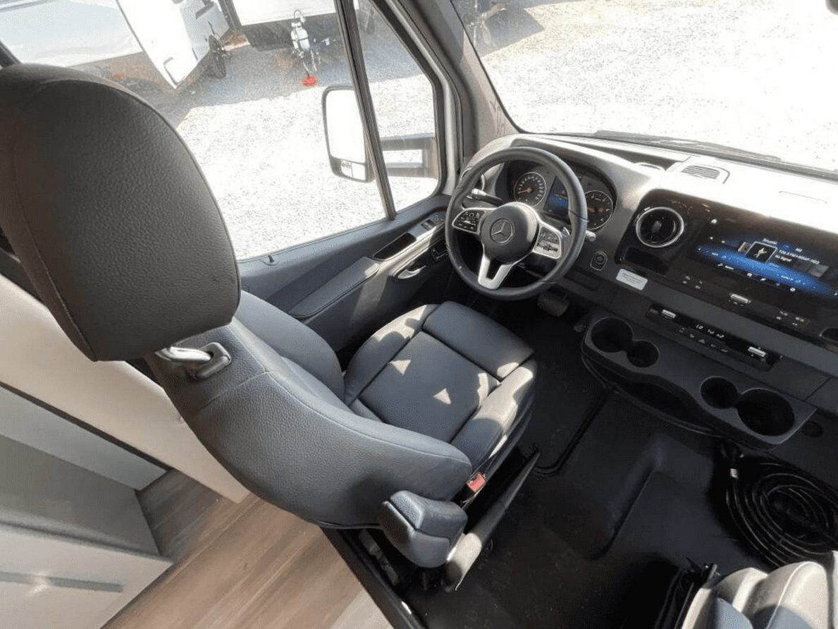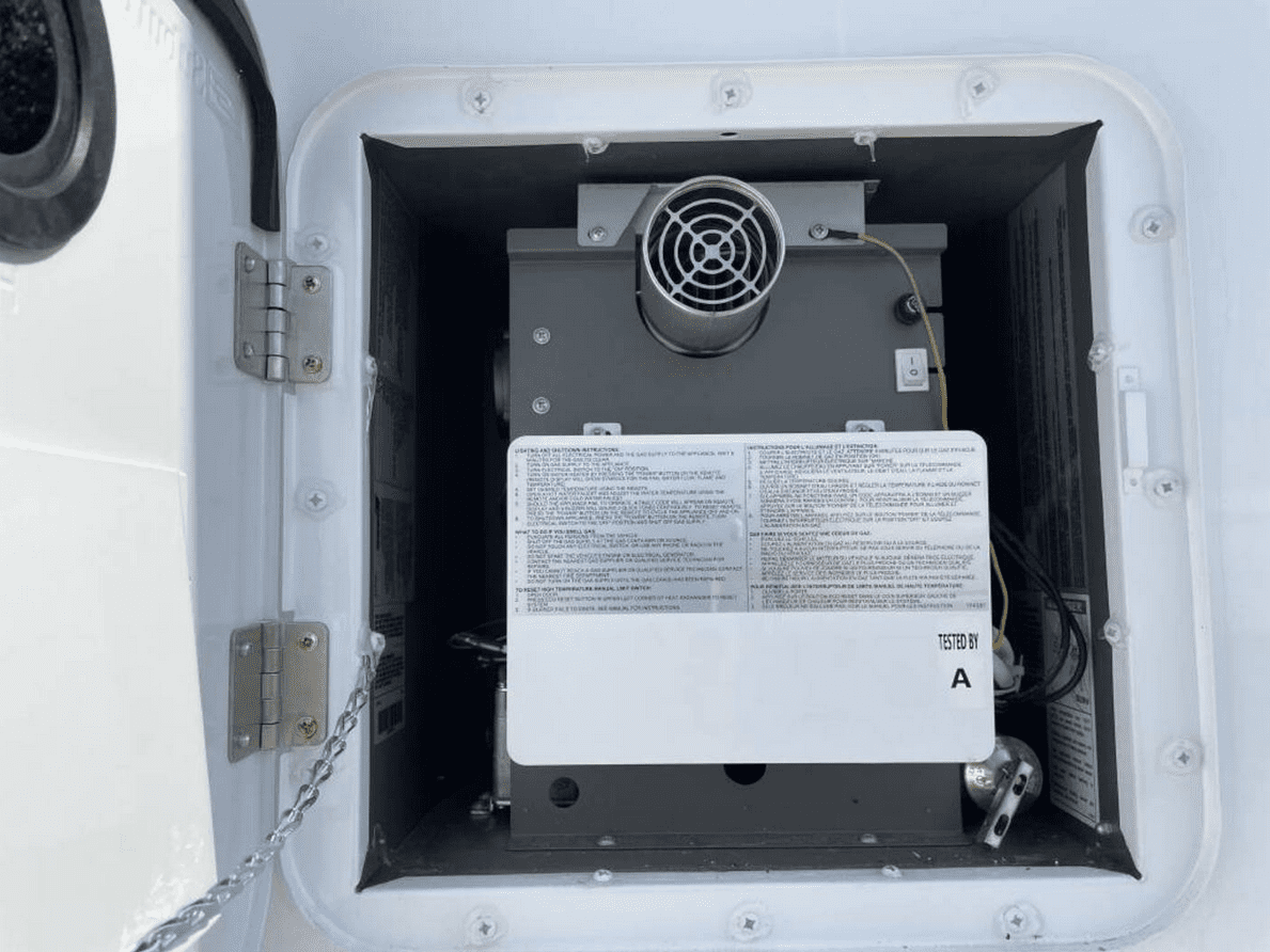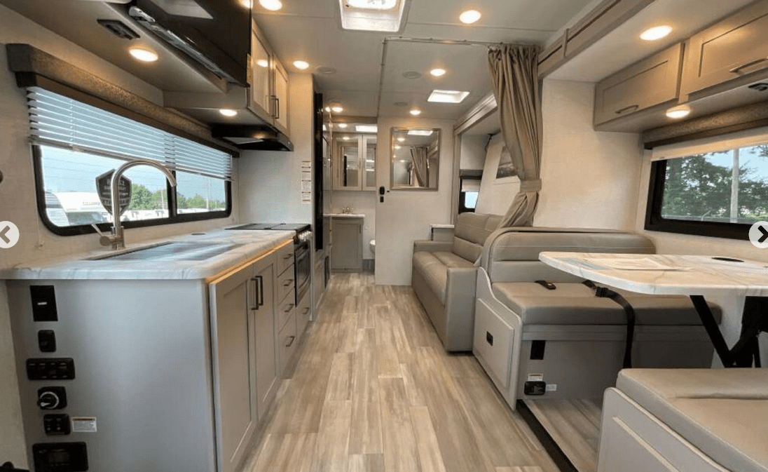 Cozy Living Area Enjoy your favorite shows on the built-in TV and relax in the climate-controlled interior with A/C and heating.