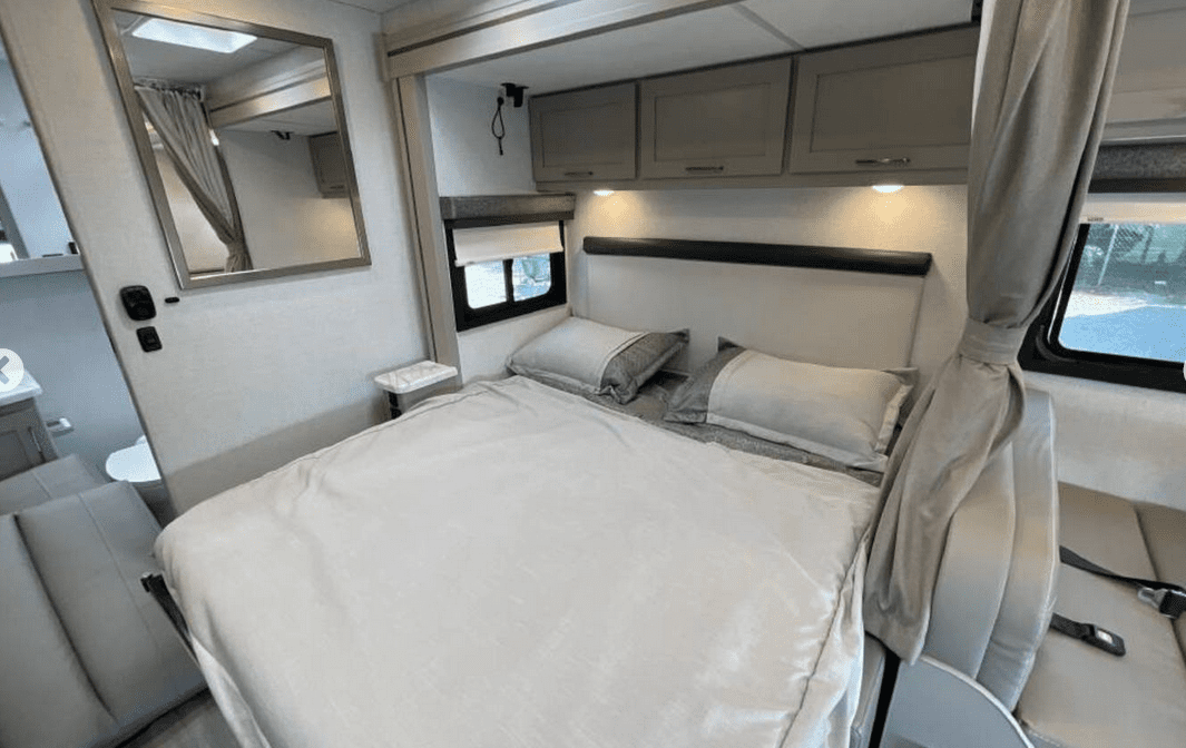 Sleeps Up to 4 Featuring a queen-size bed, a convertible dinette, and a spacious overhead bunk. Ideal for restful nights after a day of adventure.